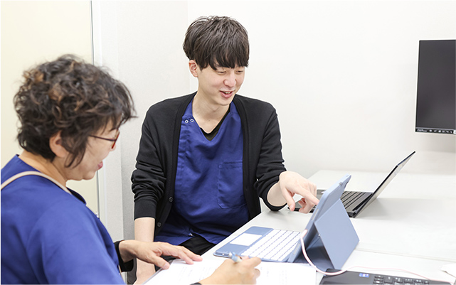日々の関わりの中で、声に耳を傾け、寄り添いながら、生活・仕事・医療・相談といった必要な支援をチームでつなぎます。また、感謝や思いやりを行動で示し合うことで、信頼関係を築き、安心して頼れる環境づくりに努めています。